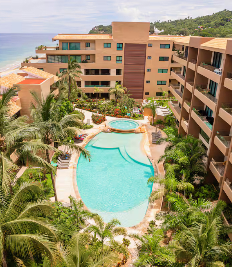 The 3 Bedroom Ocean Front Combo offers a bright and open three-bedroom layout with panoramic ocean views, a full kitchen plus kitchenette and two private terraces overlooking the Pacific. Ideal for friends and family seeking comfort and coastal luxury just steps from the beach.